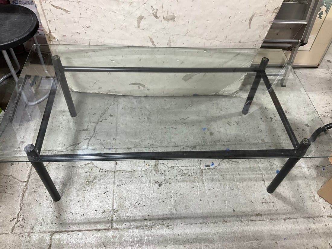 Glass table with black metal frame(16in.x50in.x27in.)