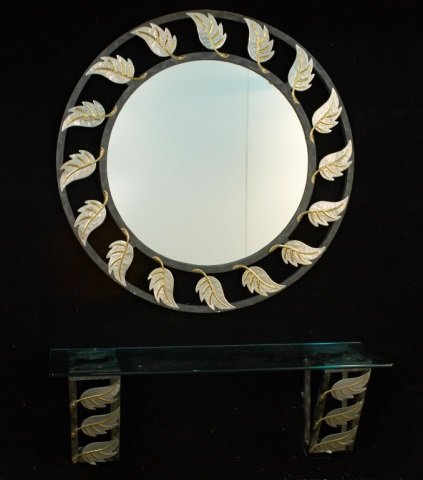 Vintage Baroque Style Silver Leaf Console Table and MirrorHollywood Regency Mirrored Console with Applied Decoration and Cabriolet LegsDomed Beveled Glass Detailed Beveled Wall or Console Mirror by La BargeAn Italian Gilt Wood Wall, Console or Pier Mirror19th Century Empire Style Wall or Table MirrorDakota Jackson "Cuba" Console Table & MirrorMar 14, 2026HOLLYWOOD REGENCY SILVER GILT CONSOLE AND MIRROR1 day LeftA wrought-iron wall mirror, 20th century,Mar 17, 2026LaBarge Glass, Silver & Gilt Metal Floral & Foliage Pier Table & Mirror 20thCMar 07, 2026Hollywood style mirrored kidney shape dressing vanityMar 08, 2026A 20th century rococo style gilt carved wooden console with marble top and matching mirror475 Lots AwayEMPIRE STYLE MARBLE TOP CONSOLE AND MIRRORMar 06, 2026Italian style in antique decorated gold bevel glass mirrorMar 08, 2026High Style Brass & Chrome Florescence Magnifying Vanity/Jewelry MirrorMar 20, 2026Set, Black Console Table and Matching MirrorMar 08, 2026Hen-Feathers Garden Mirror1 day Left