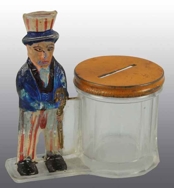 SoldGlass Uncle Sam Candy Container BankUncle Sam glass candy container bank with original paint, 4" HSee Sold Price