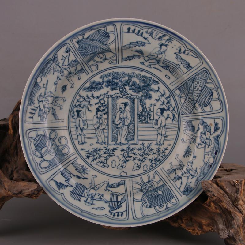 Glazed blue and white figure plate