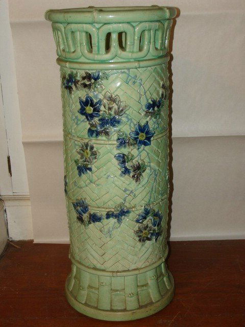 GLAZED FAIENCE UMBRELLA STAND, NO APPARENT MK., B