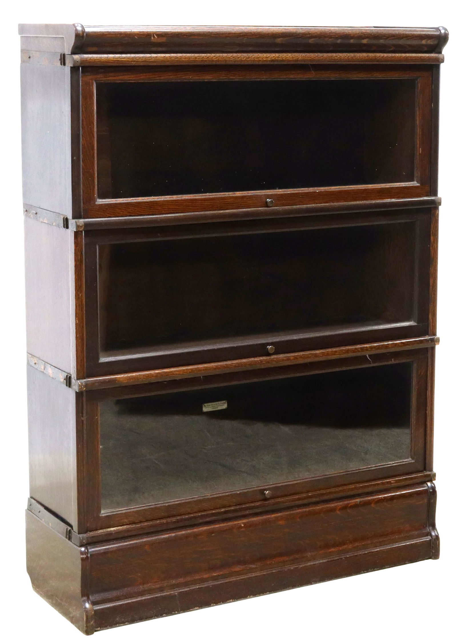 GLOBE-WERNICKE OAK THREE-STACK LAWYER'S BOOKCASE