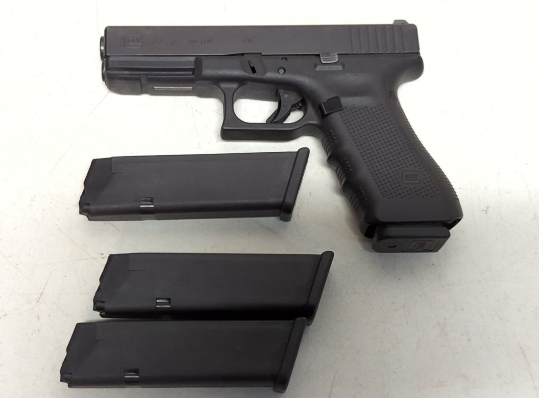 LOT OF 2: SEMI AUTOMATIC PISTOLS1 day LeftGlock Model 30 SF Semi-Automatic Pistol, .45 Auto, Night Sights and Case,1 day LeftGlock Model 23 Gen 4 Semi-Automatic Pistol, .40 Caliber, Brand New in Case, c. 2012-20202 days LeftGlock Model 43 Subcompact 9mm Pistol with Custom Spartan Molon Labe Engravings, Circa 2015-Present1 day LeftGlock Custom Model 19 9mm Semi-Automatic Pistol with Lone Wolf Threaded Barrel, c. 2010-20202 days LeftGlock Model 43 Semi-Automatic 9mm Pistol with Threaded Barrel and Case, c. 2015-Present1 day LeftGlock Model 23 .40 cal Semi Auto PistolMar 22, 2026Glock 17 9 MM Gen 4 PistolFeb 28, 2026Glock 22 Gen 3 .40 S&W Semi Auto PistolMar 15, 2026Glock 17 Gen 2 9mm Semi Auto PistolMar 15, 2026Glock 36 Gen 3 .45 ACP Semi Auto Pistol2 days LeftGlock 24 Gen 2 Long Slide .40 S&W Pistol2 days LeftGlock 19 Gen 2 9mm Semi Auto PistolMar 15, 2026Glock 22 Gen 4 .40 S&W Semi Auto PistolMar 15, 2026Glock 17 Gen 2 9mm Semi Auto PistolFeb 28, 2026Glock Model 17 9mm Semi Auto PistolMar 22, 2026