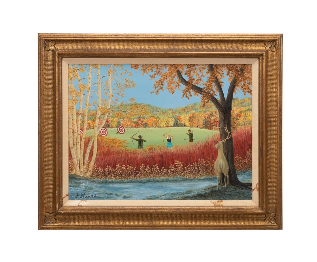 GLORIA STUART, FIGURAL FALL LANDSCAPE OIL