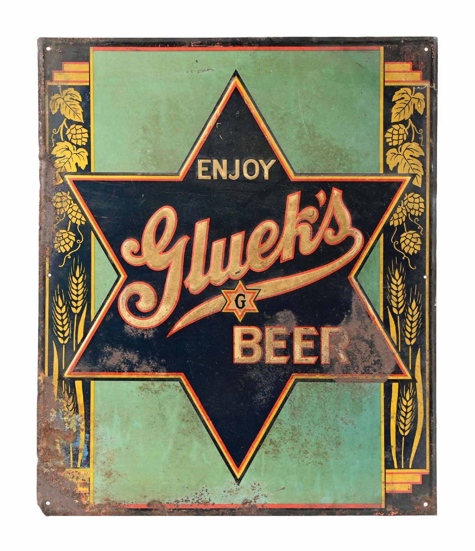 GLUEK'S BEER TIN LITHOGRAPH SIGN