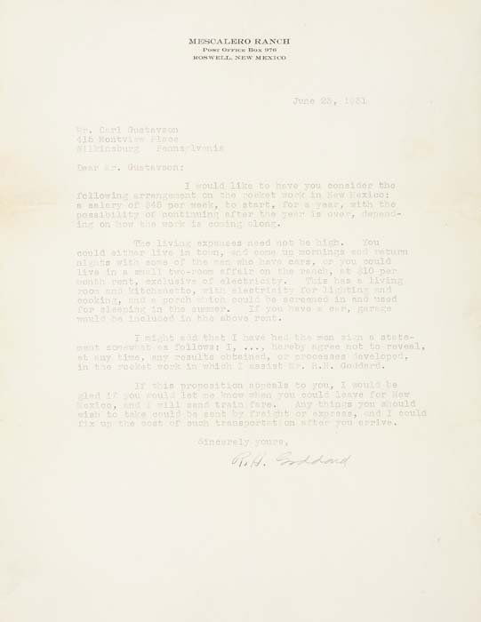 GODDARD, ROBERT H. Typed Letter Signed "R