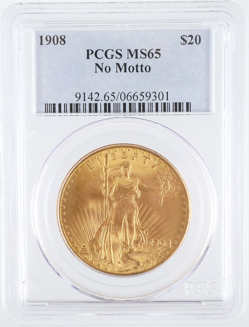 GOLD: 1908 $20 Double Eagle, PCGS MS65