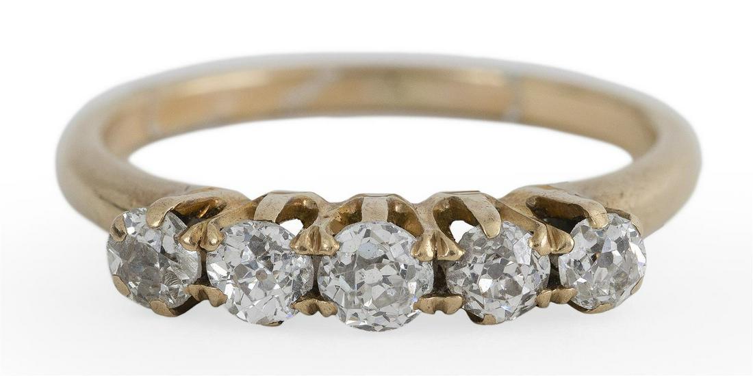 GOLD AND DIAMOND RING Set with five brilliant-cut