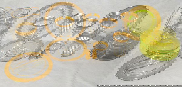 Lot of Shelley Bone China White and Gold Dinnerware PiecesMar 26, 2026(27) Fostoria Gold Band Crystal Stemware1 day LeftLarge Group of Val. St. Lambert "Metternich" Glassware6 hrs LeftA twenty-five piece suite of Union Street Glass 'Manhattan' gilt and clear glass stemware, modern1 day LeftCrystal Goblets (10), Wines (7) 1950, H 6.5" 17 PCSMar 20, 2026Leaf Pattern Gilt Crystal Stemware Service, 167 hrs LeftCOLLECTION OF EARLY GLASS INC. PR OF RINSERS, FLIP GLASS, TUMBLERS, 2 DECANTERS- 18 WINE OR3 days LeftCambridge Rose Point Gold Encrusted Stemware (8)Mar 28, 2026Set of 12 (Twelve) 6.5" Side Dishes O & E Royal Austria with 24K Gold TrimMar 28, 2026Lenox Chesapeake Dinnerware Set - Service for 8 Plus ExtrasMar 26, 2026HUTSCHENREUTHER BAVARIA CHINA 83 PIECE SETMar 21, 2026Lenox "Eternal" Dinnerware Service, 23 Pcs.7 hrs LeftMcKee "Rock Crystal Clear" Pattern Depression Glass Stemware and Serveware 1915 - 1944, 80 PCSMar 20, 2026GROUPING OF WATERFORD STEMWARE2 days LeftCollection of 43 Pieces of Kyoto China Regina 7005 Gilt Dinnerware3 days LeftEnglish and American Porcelain Tableware, 32 Pcs.7 hrs Left