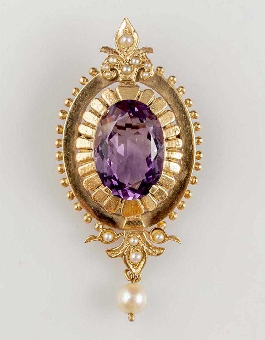 Antique Victorian 18k Gold Amethyst Seed Pearl Floral Pendant BroochMynt Auctions4.4(832)$1003 days Left