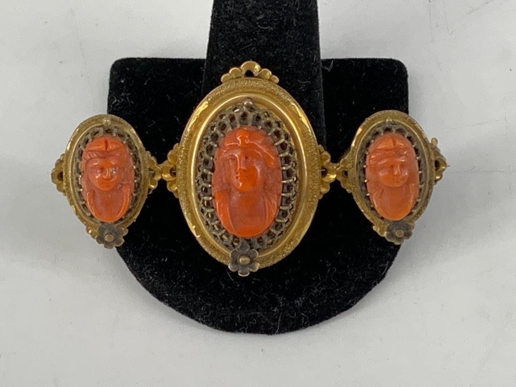 14 kt. Yellow gold, Victorian 14K Carved Coral Cameo Set Pendant, Brooch Earrings SetEastern European Art Gallery Inc$5004 days Left