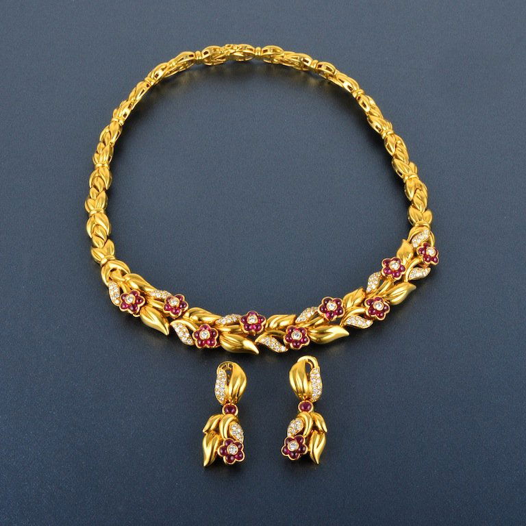 18 kt. Yellow gold, 8.3ct Ruby and 13.5ct Diamond Necklace in 18K Gold - 21.8ct. tw. DiamondEastern European Art Gallery Inc$5004 days Left