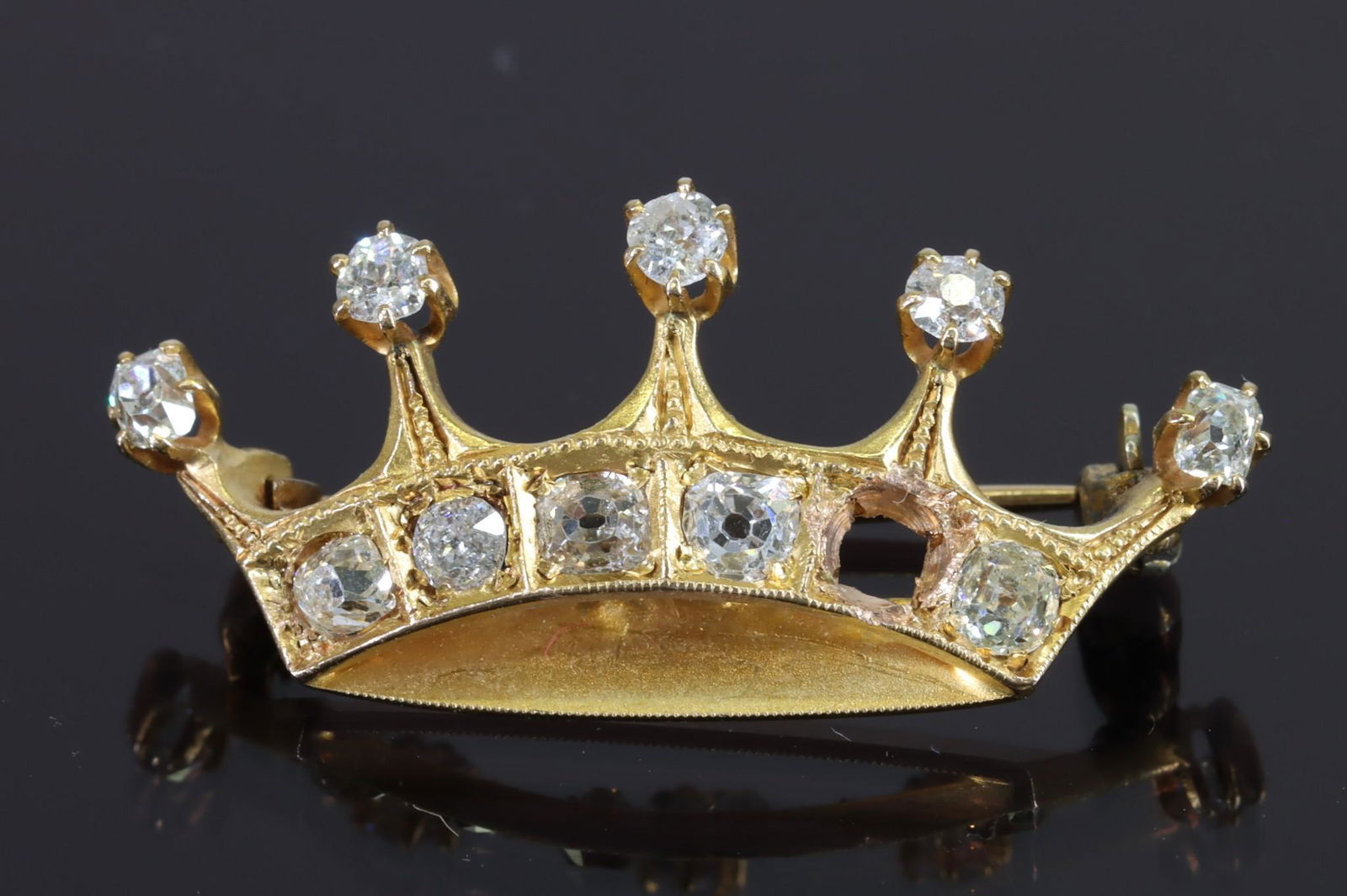 Gold Diamond Crown Pin