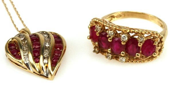 GOLD DIAMOND W/ RUBY NECKLACE & RING LOT