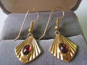 SoldSterling Silver (gold plated) hoop earrings with tiny red stones. Like new.Sterling Silver (gold plated) hoop earrings with tiny red stones. Like new.See Sold Price