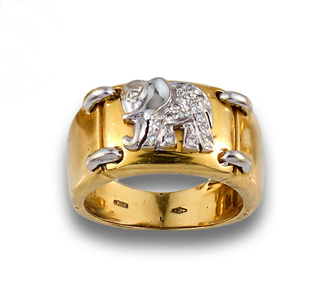 NEW 14K TWO TONE GOLD LADIES FANCY RING ELEPHANT