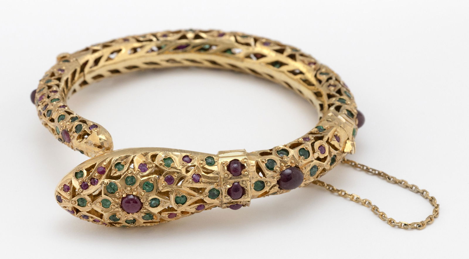 14K Yellow Gold Snake Wrap Flex Bangle Bracelet with Diamonds and RubiesMynt Auctions4.4(842)$1001 day Left