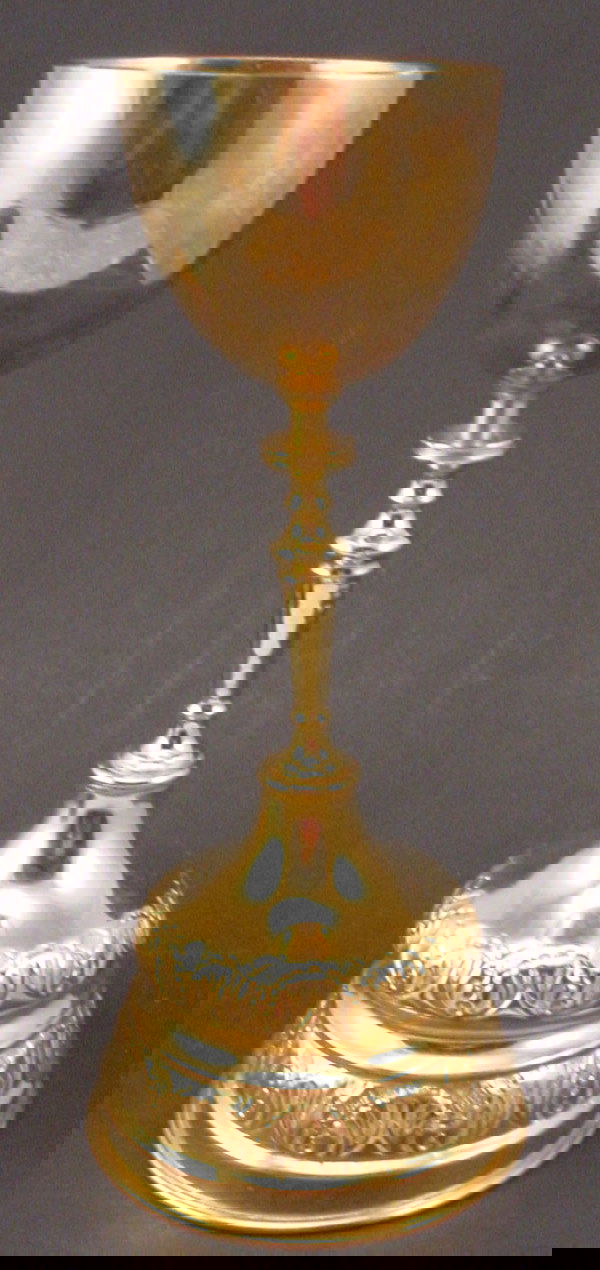 SoldNice ornate Gothic Travel Chalice & Paten setNice ornate Gothic Travel Chalice & Paten set This is the best traditional travel chalice & paten set available Nice and sturdy, European made, all goldplated The chalice stands 4 1/2" tall with a 2 1See Sold Price