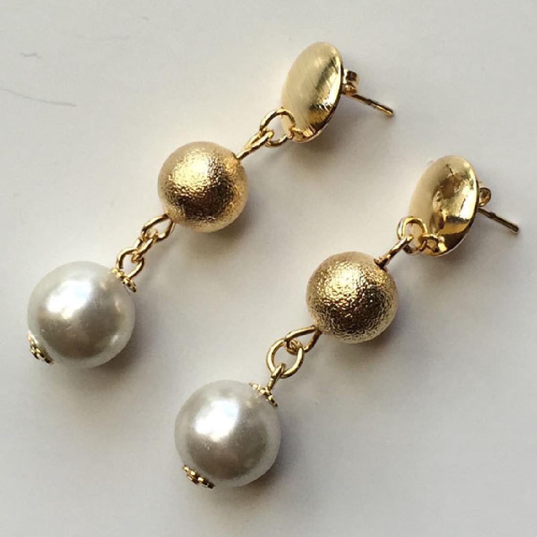 Pair of 14K Gold Earrings Set With Pearls