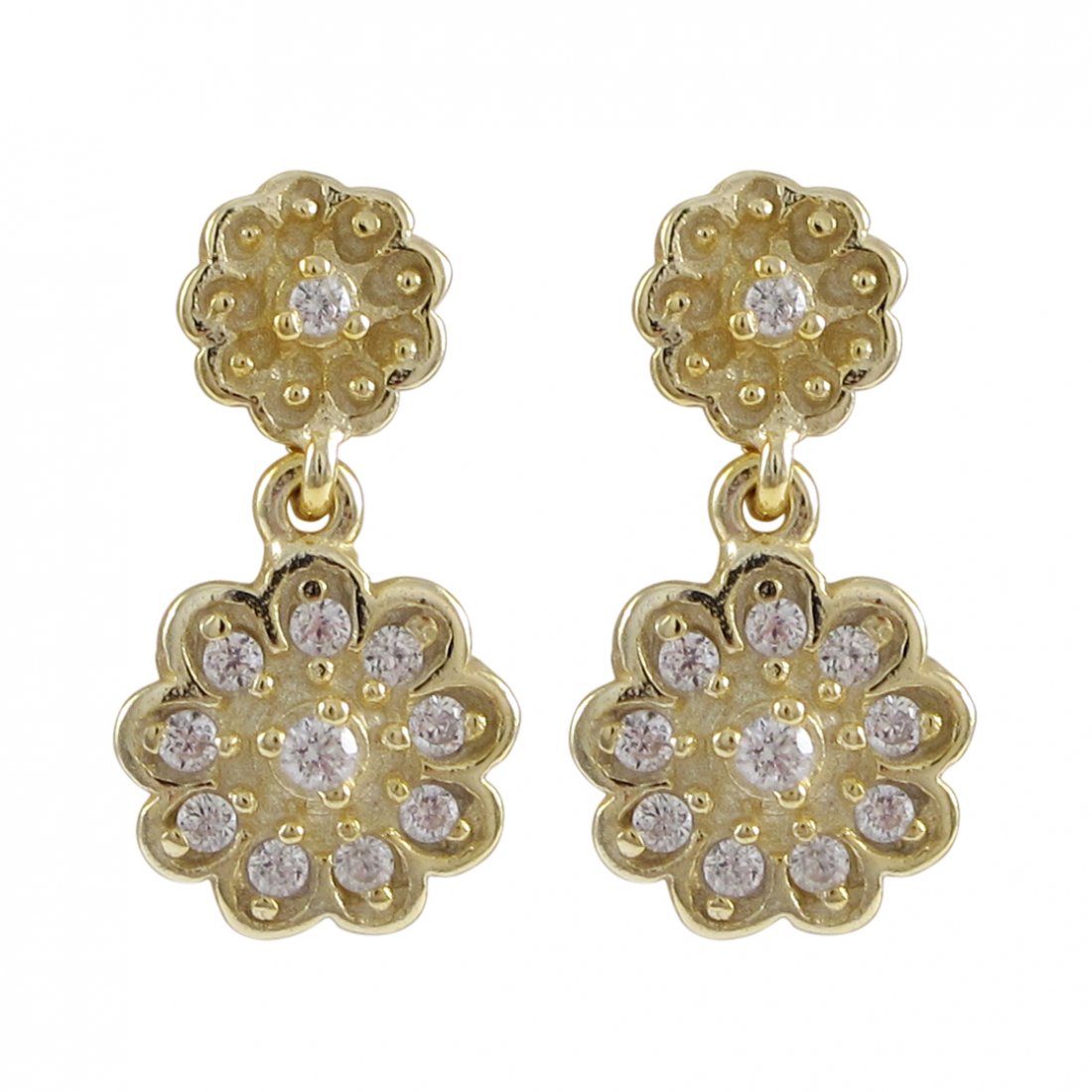 Gold Plated Sterling Silver Post Earrings, Double Flowe