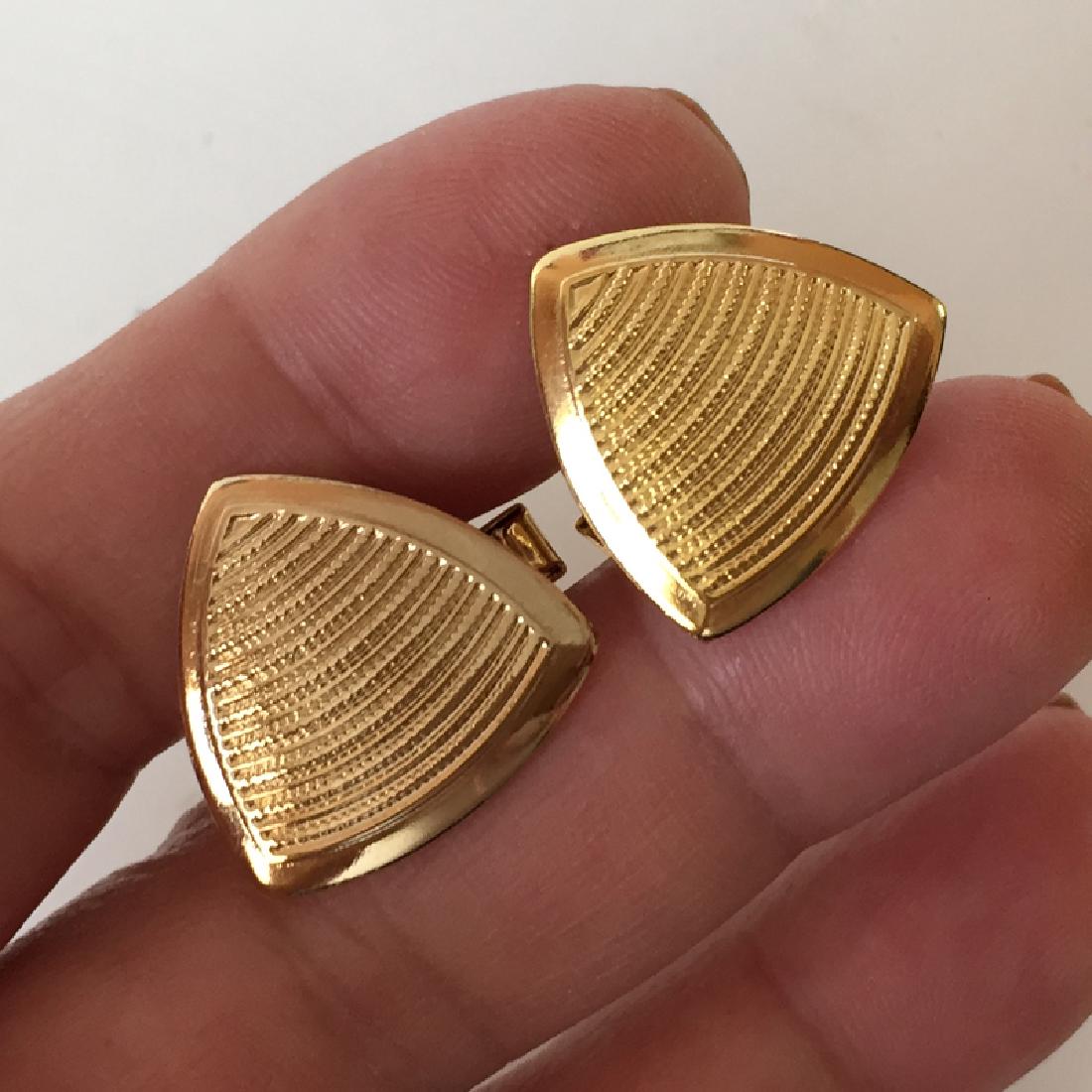 Gold plated textured triangle shaped cufflinks