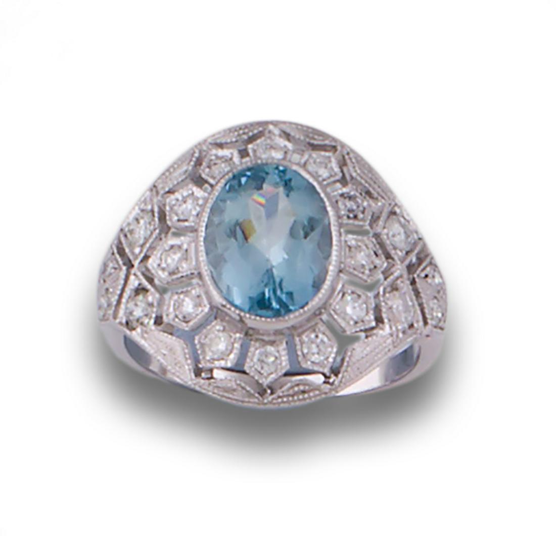 BLUE TOPAZ DIAMOND RING 18K WG 750