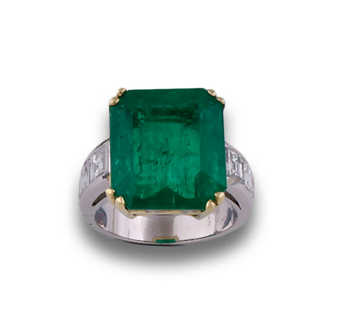 GOLD RING DIAMONDS EMERALD CERT GUBBELIN