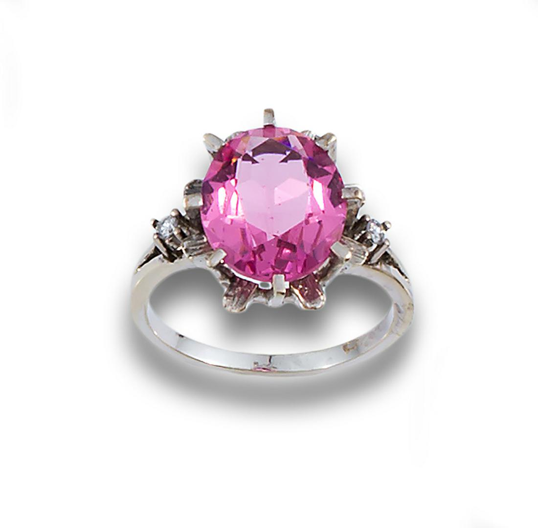 Ring - 18 kt. White gold Ruby - Diamond (ring size 52)