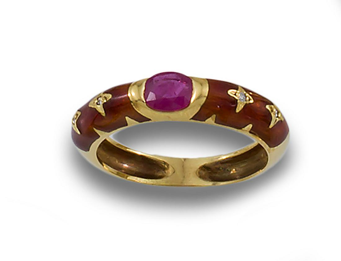 A RUBY AND DIAMOND RING IN 18K GOLD