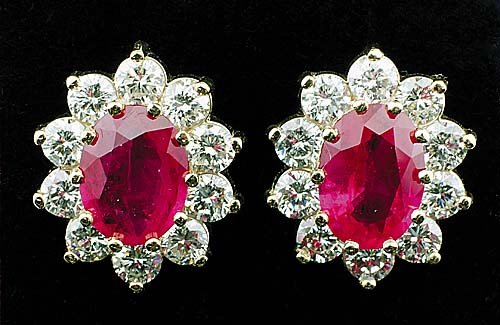 14k Gold 6.00ct Ruby 3.0ct Diamond Earrings