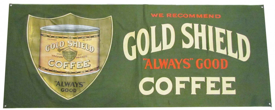 Gold Shield Coffee Cloth Banner