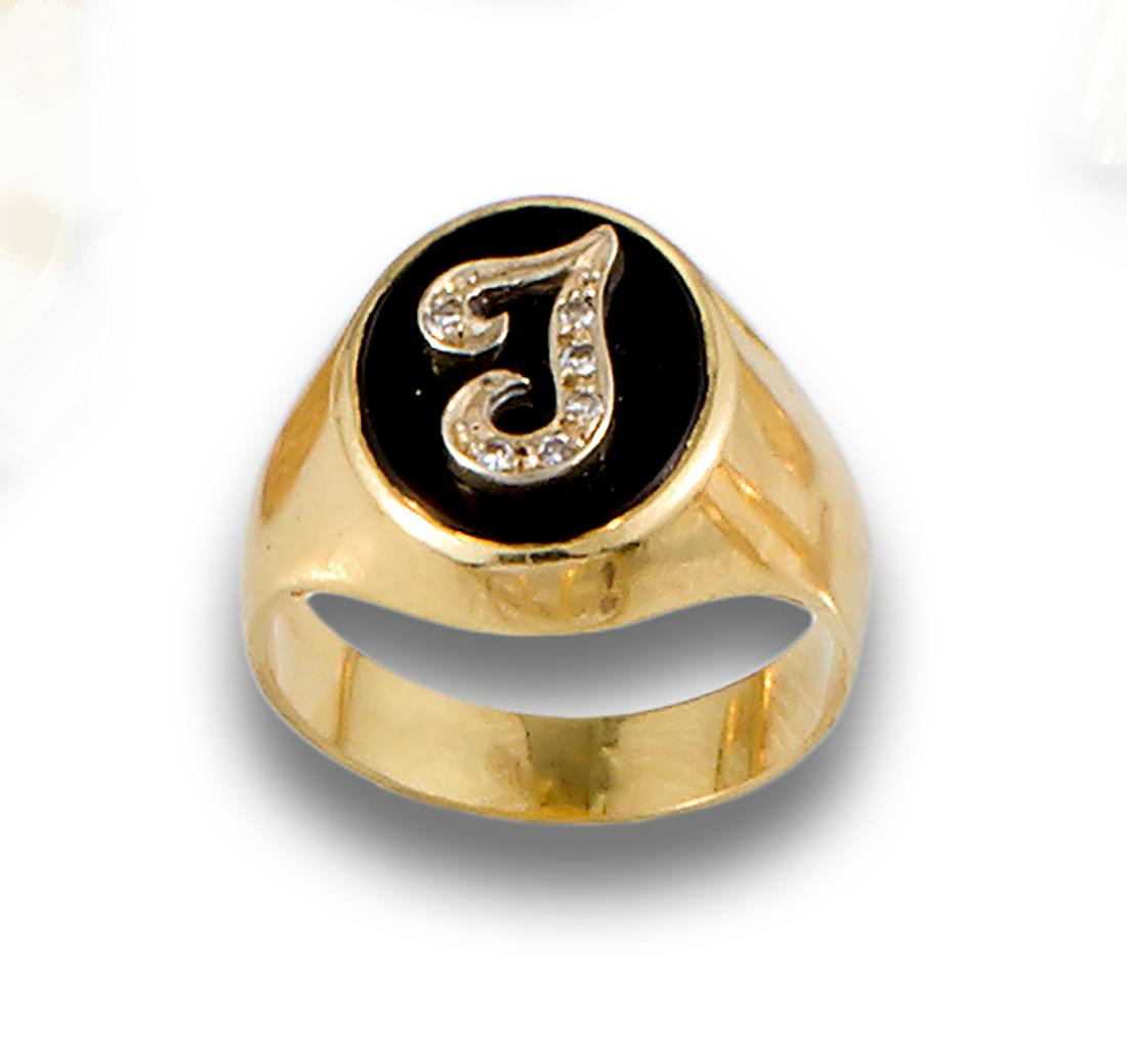 GOLD SIGNET RING J ONYX