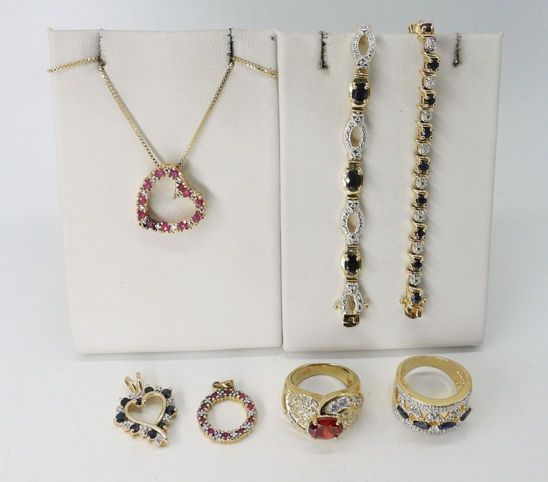 GOLD TONE 925 RUBY SAPPHIRE SETS