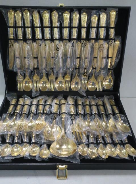 Gold Tone Setting for 12 Flatware in Box, 51 Pcs: