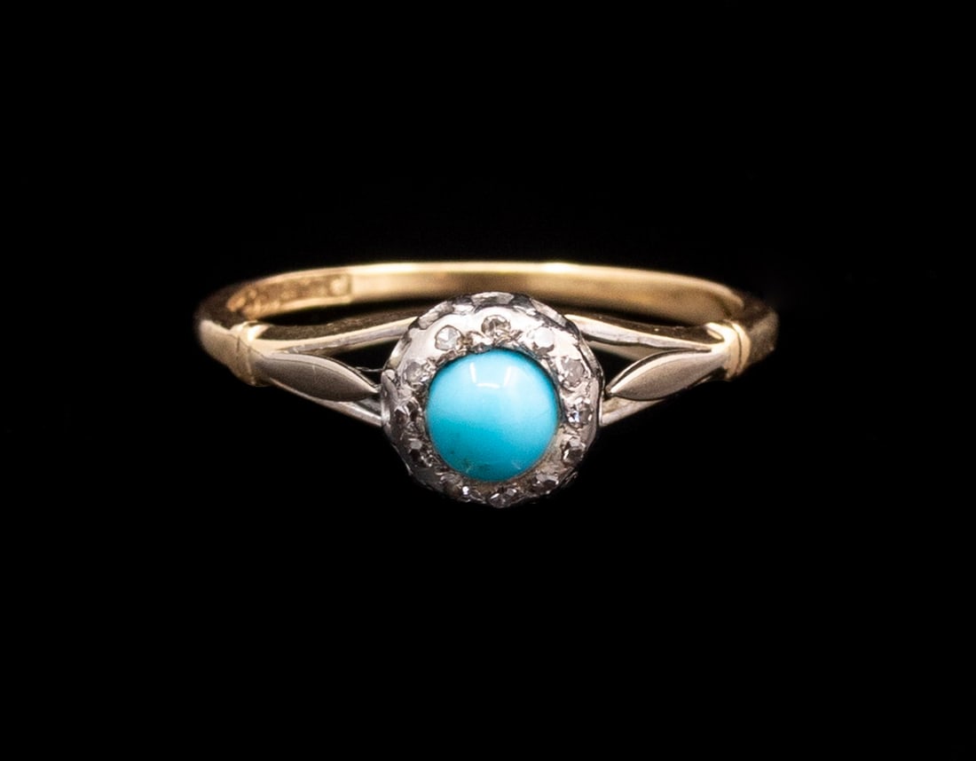ANTIQUE TURQUOISE AND DIAMOND RING