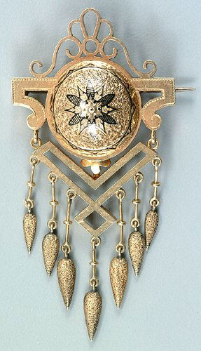FIVE VICTORIAN WOVEN HAIR-WORK MOURNING JEWELRY BROOCHES.2 days LeftVICTORIAN, DIAMOND AND SILVER-TOPPED GOLD LILY OF THE VALLEY BROOCH24 Lots AwayVictorian era Scottish Anchor Carnelian silver brooch pin…..from nice local estate, very niceApr 10, 2026Art Nouveau and Victorian Cameo Multi Stone Brooches (5)Mar 28, 2026Victorian 14k YG Diamond Brooch23 hrs LeftAntique 14k Yellow Gold Black Opal Doublet Enamel Brooch 1.5" OG5761 day LeftVICTORIAN, MULTIGEM STICK PIN BROOCHMar 31, 2026Victorian 18K Yellow Gold Diamond Enamel BroochApr 30, 2026Gold-tone Victorian Revival Costume Jewelry Brooch CollectionMar 26, 2026Gorgeous Antique 1890s Victorian Crystal Hat Pins7 hrs LeftANTIQUE DIAMOND TREMBLANT CORSAGE SPRAY BROOCH94 Lots AwayVictorian 14K Gold Holly Branch Brooch and Pins2 days LeftMulti-Tone Metal and Rhinestone Vintage Costume Brooch Collection, Florenza IncludedMar 26, 202614k Gold Victorian Brooch23 hrs LeftVictorian Gold Pins23 hrs LeftMint Antique 1890s Victorian Crest Leaf Brooch Art Nouveau7 hrs Left