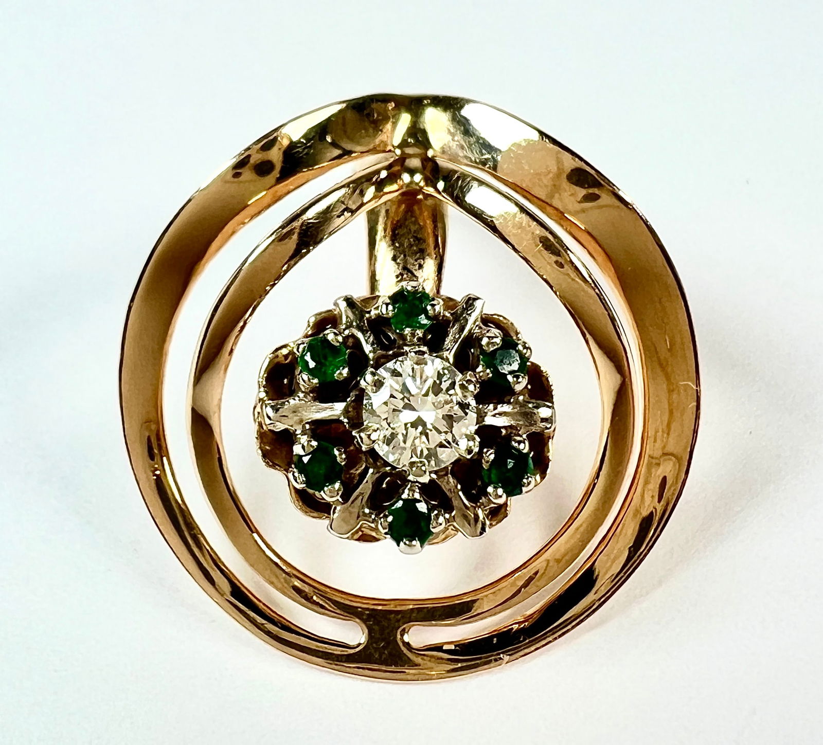 Temple St. Clair 18K gold diamond pendant necklace. Shallow relief cherub design surrounded by smallTemple St. Clair 18K gold diamond pendant necklace. Shallow relief cherub design surrounded by small round cut diamonds. Marked 750 and Temple St. Clair mark. Necklace set with white sapphire or topaz