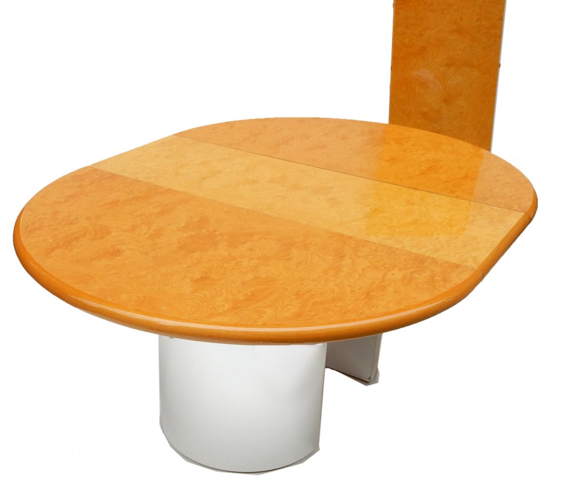 DINING TABLE HAVING A BURL WOOD BASE SUPPORTING AN ETCHED GLASS MIRRORED TOP WITH TWO LEAVES CKamelot Auctions4.4(346)$4003 days Left