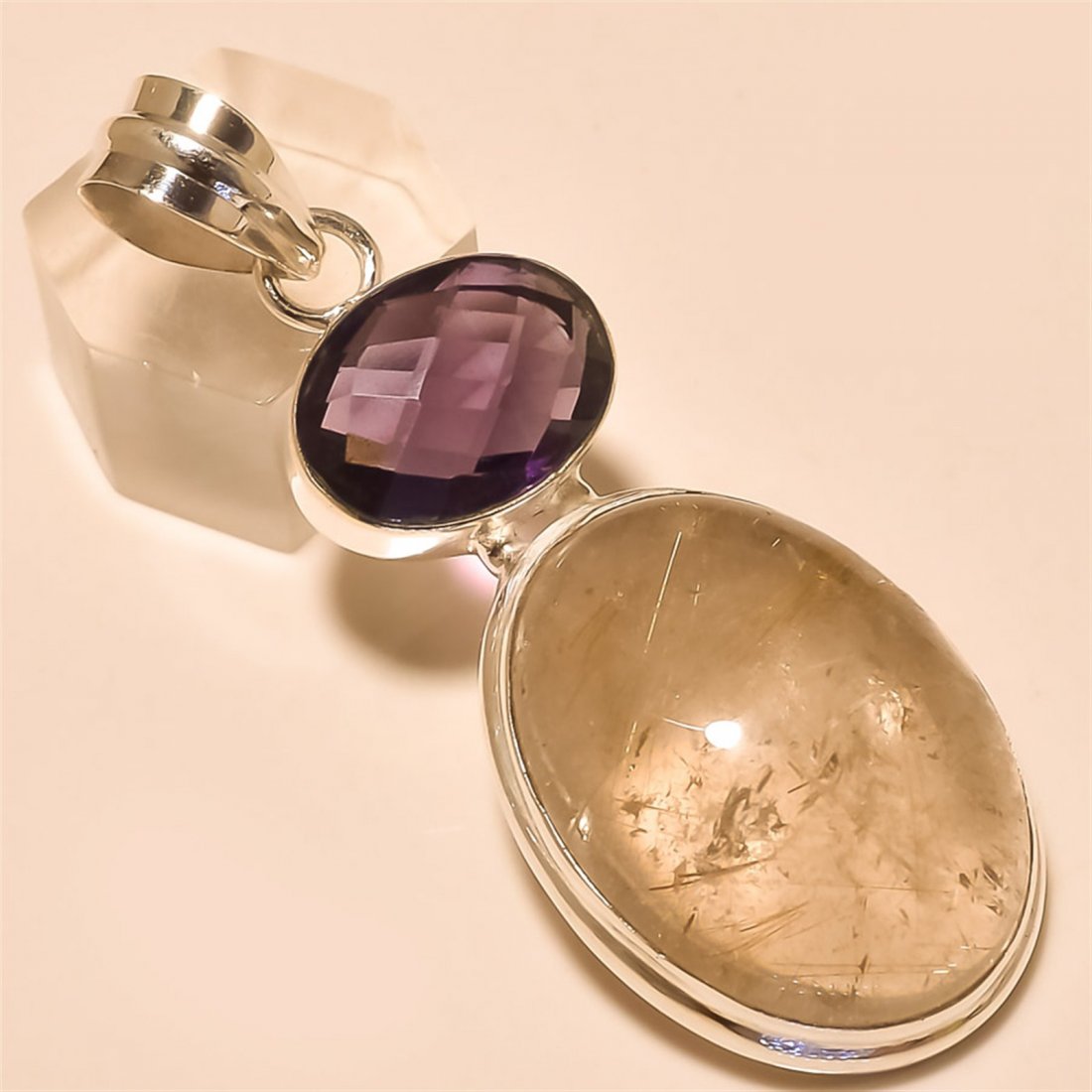 Golden Rutile /Amethyst Pendant Solid Sterling Silver