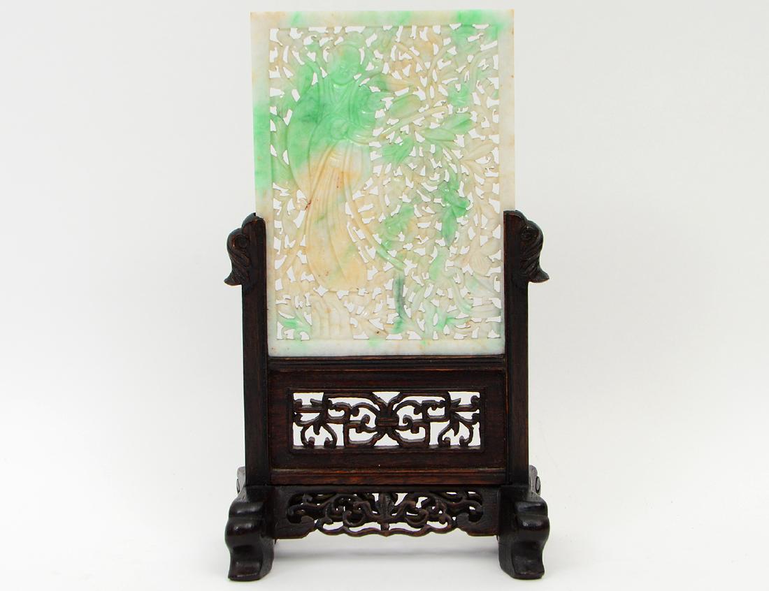 GOOD RETICULATED EMERALD GREEN JADITE TABLE SCREEN