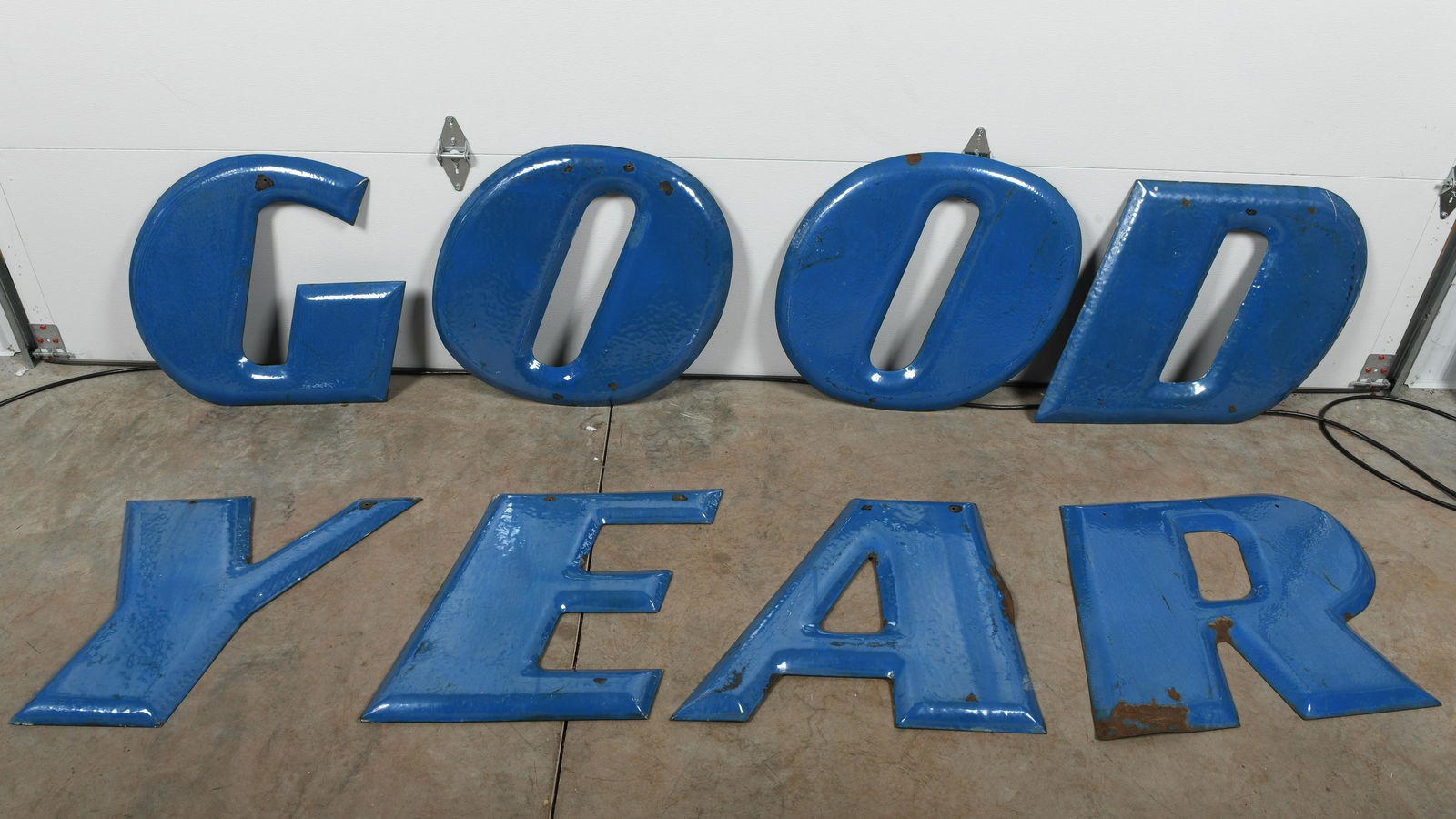 Conoco, Michelin, and Service Station SignsMar 20, 2026Flats Fixed and New And Used Tires Vacuform Service Station SignsMar 20, 2026Gas Pump Pricer Sign and Goodyear ThermometerMar 21, 2026Antique tin movie marque letters “YES”.Mar 06, 2026Goodyear Tires Horizontal SignMar 07, 2026Good Year Tires 4' DSP Sign w/ Wingfoot & Flag LogosMar 21, 2026Goodyear Service Station DSP Flange AD SignMar 21, 2026Goodyear Tires Horizontal SignMar 07, 2026Good Year Certified Truck Tire Specialist Die Cut 7' SST Sign w/ SemiMar 21, 2026Goodyear Double Sided Tin Advertising Sign AM 4-83Mar 21, 2026Goodyear Tires Selected Dealer Horizontal SignMar 07, 2026Goodrich Tires Single Sided Porcelain SignMar 20, 20261954 Good Year Tire and Battery Service Emb. SST Die Cut Sign w/ LogoMar 21, 2026Goodyear Automobile Supplies G.A. Fisher Embossed Single Sided Tin SignMar 21, 2026Goodrich Free Air Tires Single-Sided Porcelain SignMar 14, 2026B.F. Goodrich Tires SignMar 07, 2026