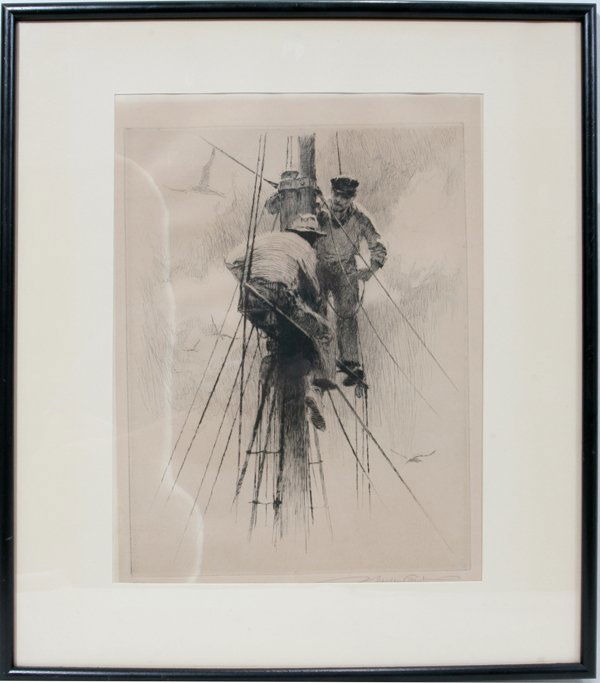 GORDON GRANT, ETCHING, 12" X 9", "UP ALOFT"