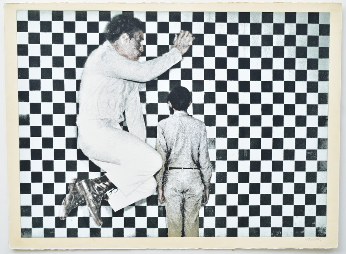 Gordon Holler screenprint, Approaching Figure (checkered wall)