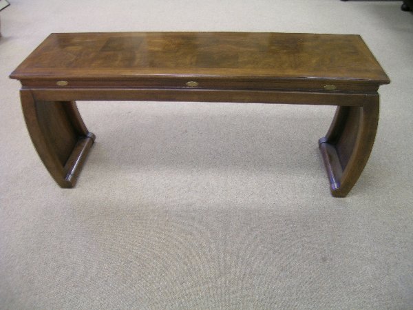GORDONS BURLED WOOD SOFA CONSOLE TABLE