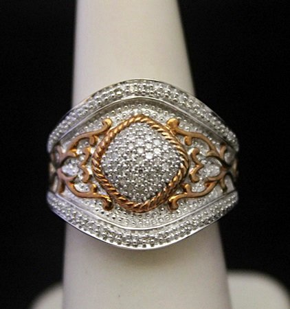 Gorgeous 14kt over Silver Leafs Print Ring with