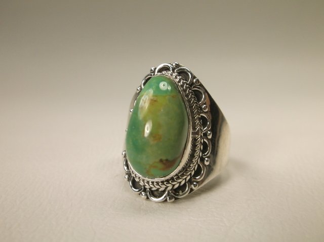 VINTAGE BEAUTIFUL NAVAJO STERLING SILVER GREEN TURQUOISE RING