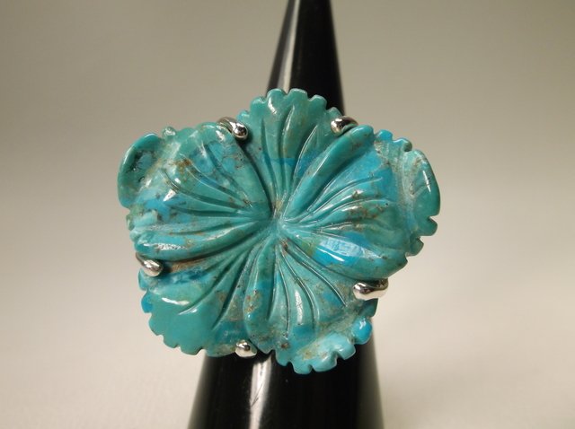 Gorgeous Sterling Silver Turquoise Flower Ring 6