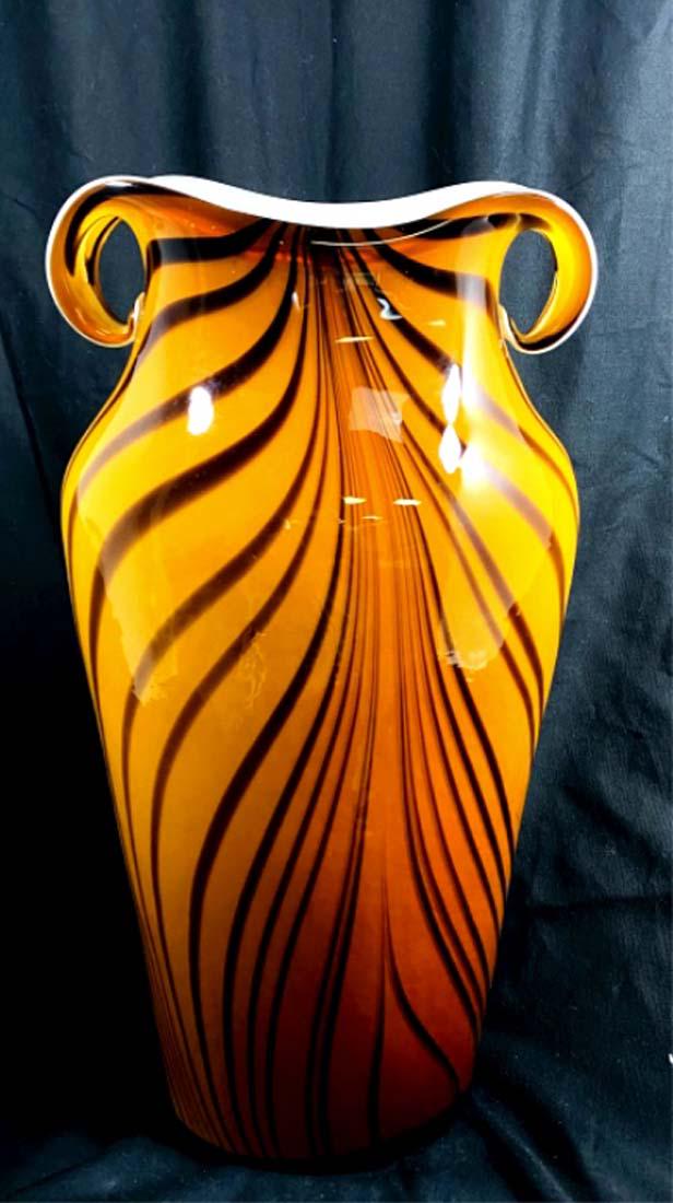 GORGEOUS TALL MURANO AMBER/PULLED LINES DECO VASE