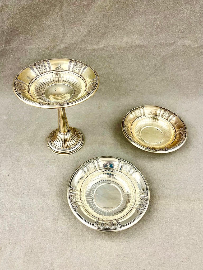 Lot Of Seven Weighted & With Glass Sterling Silver Items6 days LeftWEBSTER CO. AND OTHER STERLING SILVER BOWLS AND SPOONS, LOT OF FOURMar 04, 2026STERLING SILVER NUT DISHES LOT34 mins LeftSterling 925, 800 French Silver & Silverplate LOT4 days LeftDominick and Haff Sterling Reticulated PlatesMar 08, 2026Dominick and Haff Sterling Reticulated PlatesMar 08, 2026Vintage Silverplate Tidbit Handled Dish & Silvertone Candleholders789 Lots AwaySterling Silver Estate Tablewares2 days LeftGORHAM STERLING SILVER NUT DISHES, & STERLING SILVER TUMBLER3 days LeftThree Sterling Silver Serving Pieces — Two Compotes and Card PlateMar 07, 2026(3) STERLING SILVER WEIGHTED COMPOTES34 mins Left2 Sterling Bowls and 2 Continental Silver Bowls4 days Left3 Sterling Silver Pierced Bowls, 2 footed4 days Left(3) STERLING SILVER WEIGHTED COMPOTES34 mins LeftFrench Silver Chalice, Paten and Pyx by H. NègreMar 15, 2026Group of Four Silver Plate Serving BowlsMar 07, 2026