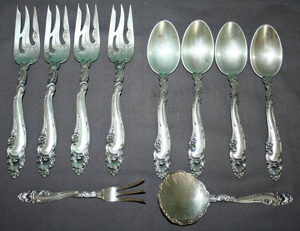 GORHAM 'DÉCOR' PATTERN DESSERT FORKS, TEASPOONS